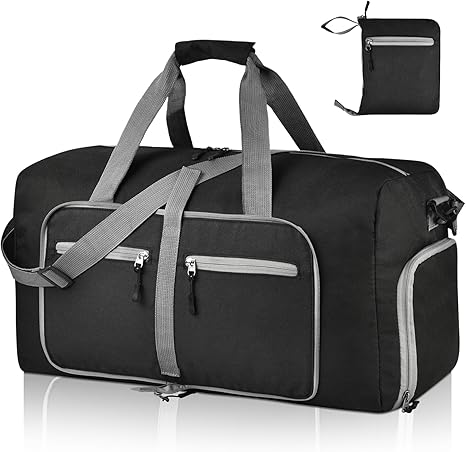 65L Travel Duffle Bag for Men Women – Foldable Duffel Bag with Shoes Compartment – Overnight Bags Waterproof & Tear Resistant(Black)