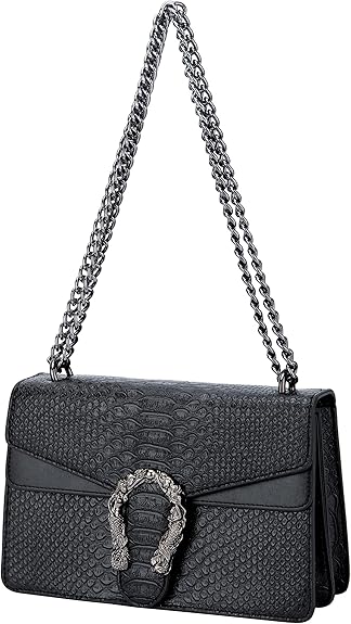 Leather Shoulder Bag Chain Purse for Women – Fashion Crossbody Bags Vintage Snake Print Underarm Bag Square Satchel Handbag
